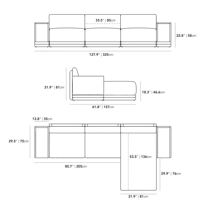 - Available as 2- or 3-seater sofas, sectionals, chaises and side table