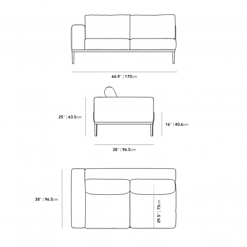 Incorporate modern simplicity into any outdoor living space with our Francis Modular collection. Made of high performance materials and plush fabrics; the Francis Left Arm 2 Seater is perfect for relaxing with a book or a glass of wine on a calm summer night. Use alone as an open end sofa or incorporate with other modules, the Francis is flexible for any space.