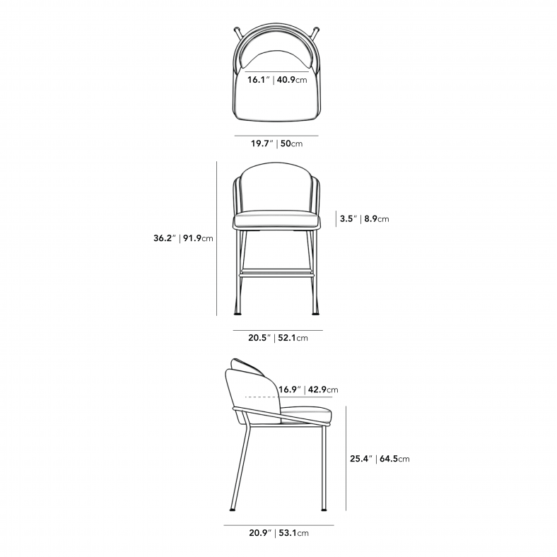 The timeless silhouette of the Angelo Counter Stool exudes luxury within the home. Sleek black powder coated legs wrap around a full and accommodating seat and backrest filled with premium high density cushioning. Angelo's chic ambiance encourages a leisurely and indulgent dining experience, adding to your homes overall aesthetic. Bring Italian inspired design home with this modern piece available in your choice of premium upholstery.