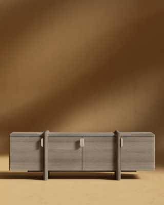 A sophisticated fusion of Bauhaus-inspired design and modern elegance, the Apollo bookshelf offers a timeless, architectural presence. The curved oak veneer shelves, adorned with a rich wood grain veneer, are beautifully framed by champagne-colored iron steel, creating a striking contrast that captures attention. The Apollo's seamless blend of real wood and metal accents, making it an exquisite centerpiece in any space.