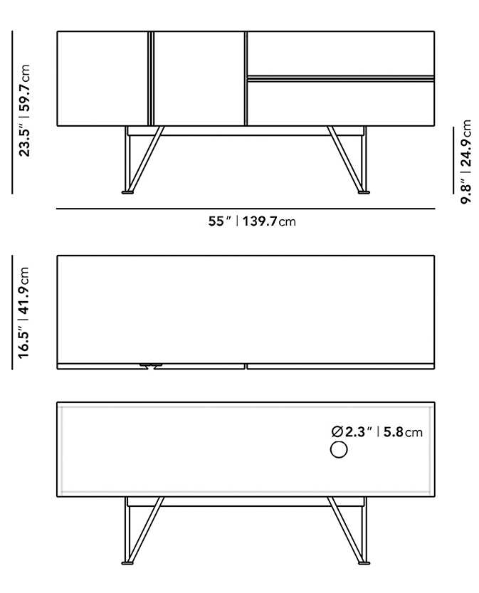 The Bennett Media Console is a modern luxury piece with hints of industrial trend and contemporary flare. A sleek, tailored design, Bennett is well suited for a sophisticated home that yearns for a touch of gold. Handsome American walnut veneer and characteristic black detailing balance confidence with mature subtlety. The Bennett Media Console is available in two sizes.