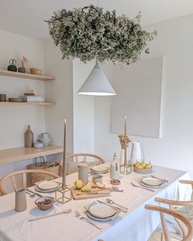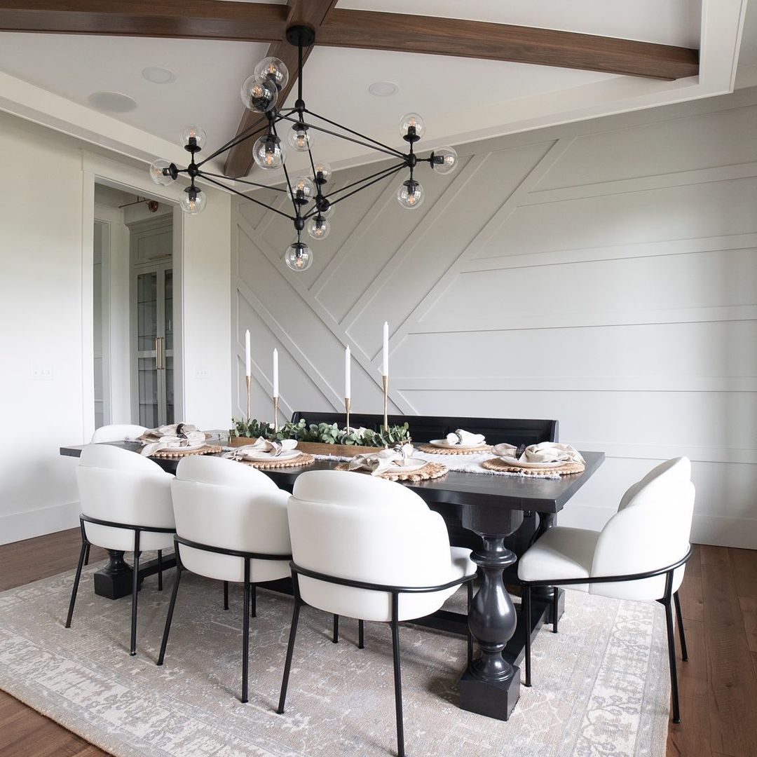 Add some soft, textural elements to your dining space by using plush, cushioned dining chairs in a contrasting color and material like the Angelo Dining Chair in Pearl, Chatou Bouclé Wool for some visual and textural interest.