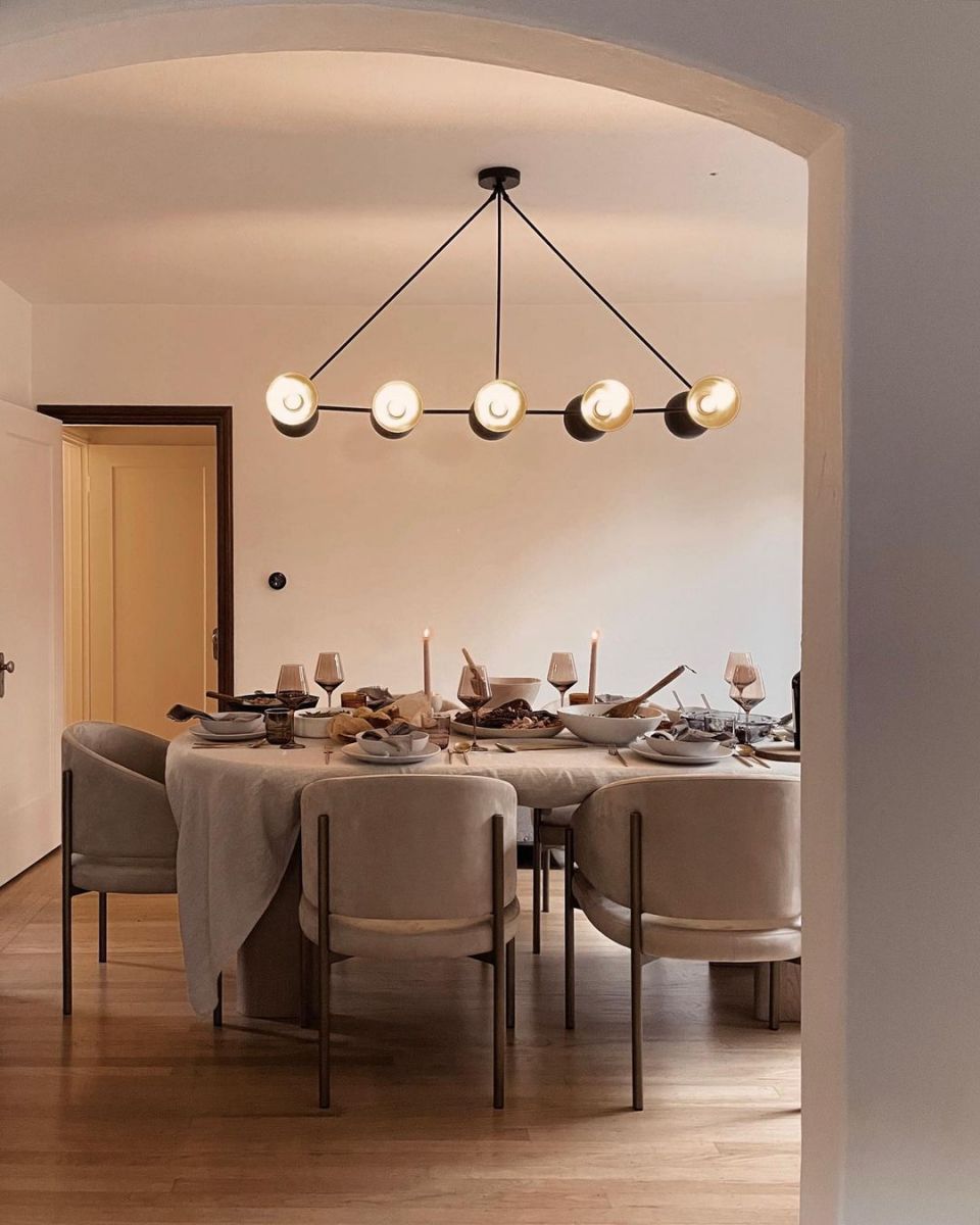 One of the first things your guests will notice when taking in your space is the look of your space. Create dimension and visual appeal to your dining space by decorating with a neutral linen tablecloth, incorporating some natural textures like fresh fir, cedar, or white pine, and adding candles. Pairing these intriguing elements together with a luxuriant dining chair in a plush material and contrasting brass metal like our Solana Dining Chairs in Latte, Venice Vegan Suede for a sophisticated and elegant space.