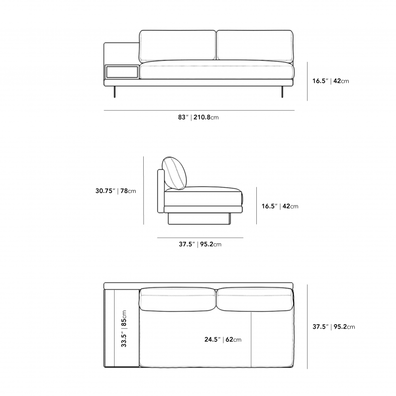 - Armrest and side table can be attached interchangeably on either end of this piece