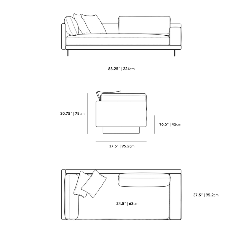 - Kiln-dried hardwood frame with doweled joints and reinforced corner blocks