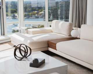 Compelling in its simple yet cutting edge style, the Dresden modular collection is a bold take on contemporary design. The sleek, low profile frame is met with grand cloud-like seat cushions to create the statement making structure. The Dresden also balances the expansive seating with an interchangeable side table insert that is offered in walnut, natural, and white lacquer finishes. Grounded on cast stainless steel legs with an elegant brushed finish, this piece's thoughtful composition demonstrates an exceptional opportunity for modern luxury in your home.