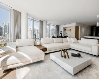 Compelling in its simple yet cutting edge style, the Dresden modular collection is a bold take on contemporary design. The sleek, low profile frame is met with grand cloud-like seat cushions to create the statement making structure. The Dresden also balances the expansive seating with an interchangeable side table insert that is offered in walnut, ash, marble, and white lacquer finishes. Grounded on cast stainless steel legs with an elegant brushed finish, this piece's thoughtful composition demonstrates an exceptional opportunity for modern luxury in your home.