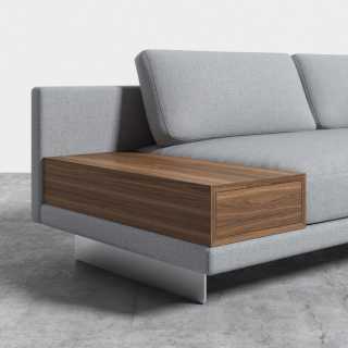- Includes 1 chaise with armrest & 1 armless sofa with walnut storage table