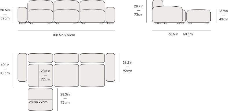 - This set includes 3 backrests S, 2 armrests, 4 ottomans S, 3 backrest pillows S, and connectors