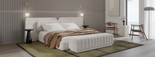 The timeless silhouette of the Angelo Bed exudes luxury within any home. Sumptuous upholstery wraps around the robust and accommodating frame, complementing the grandiose headboard.