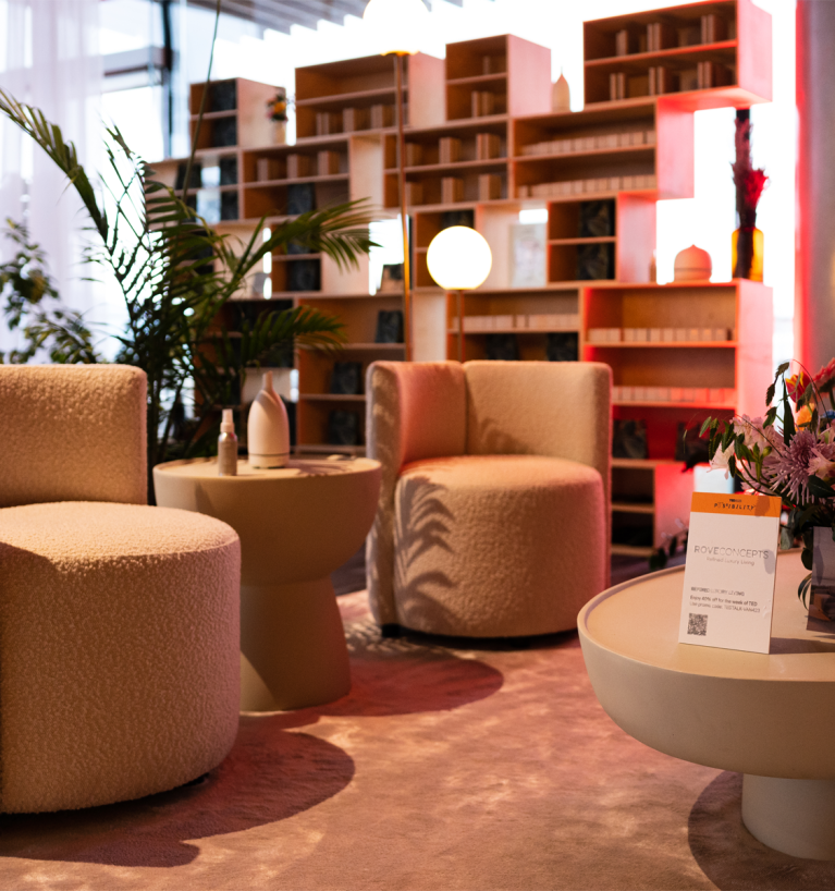 Indulge your senses in the captivating spirit of these lounge spaces at TED2023. Explore our designs to curate the perfect space for relaxing.