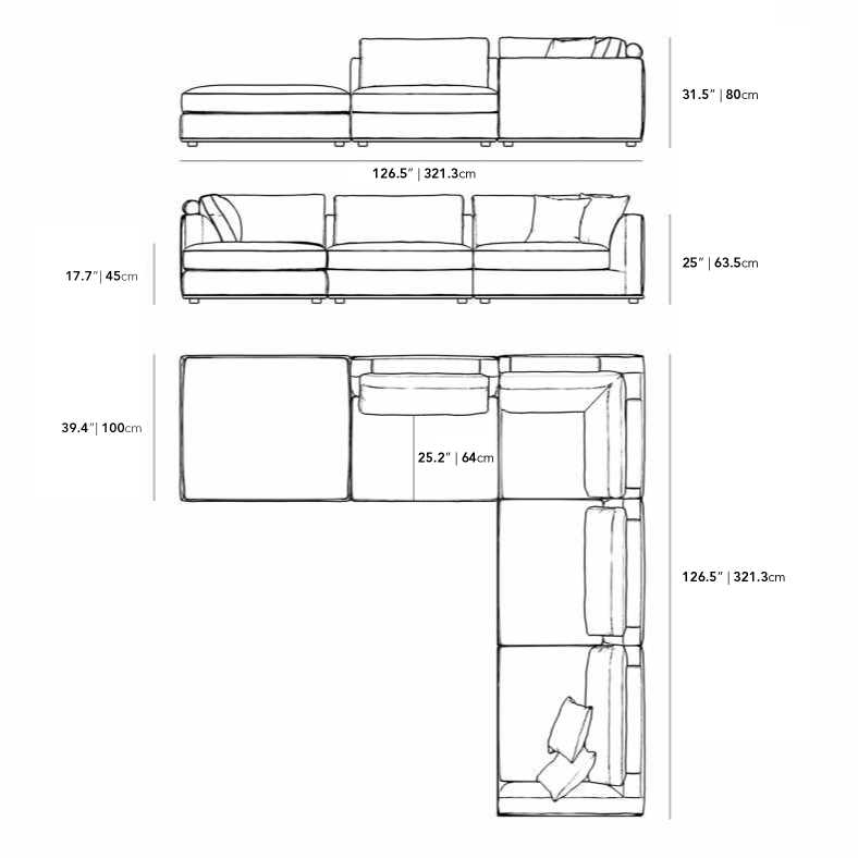 The sleek and flat profile of the Milo Modular Sectional marries sophisticated style with casual comfort. Milo’s subtle curves of the padded armrest add visual elegance while delivering plush and stable support for the spacious seating. Milo is a modular design that can be customized to a configuration that fits your unique space. Much like the grandeur of Italian design, Milo is especially suited for large luxury spaces as each sectional piece is formed with more width than the average sofa, providing an overall grander feel for your home. Enjoy our preset configuration or customize your own design by purchasing pieces separately.