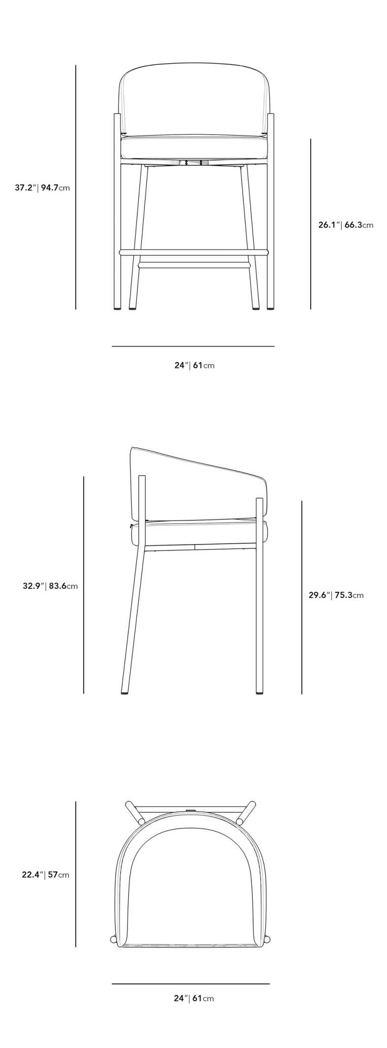 Revealing its luxuriant character, the Solana invites you to delve into an atmosphere of pure sophistication with its curved form. Pairing sumptuously plush upholstery with a contrasting metal base, the Solana Counter Stool brings grace and modern luxury to any kitchen or dining space.
