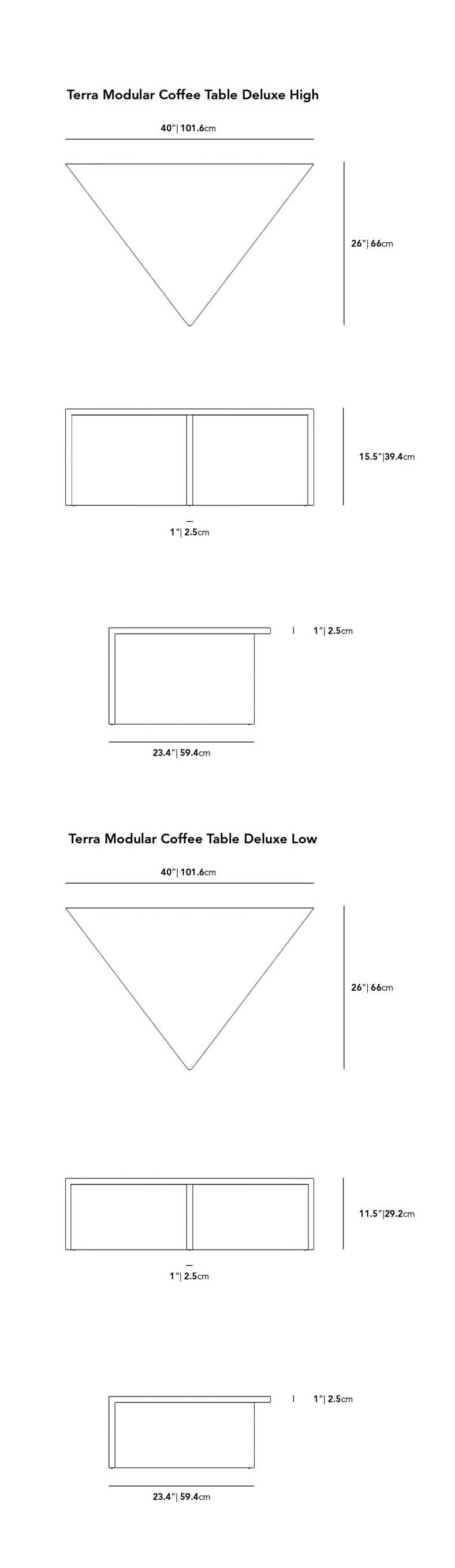 The art of modern architecture is brought to life through the Terra Coffee Table - High. The captivating sharp angles and luxuriant materials of the Terra will transport you to an atmosphere of sophisticated warmth in any space. Pair with any of our expansive modular sectionals for a grandiose and elegant living room.